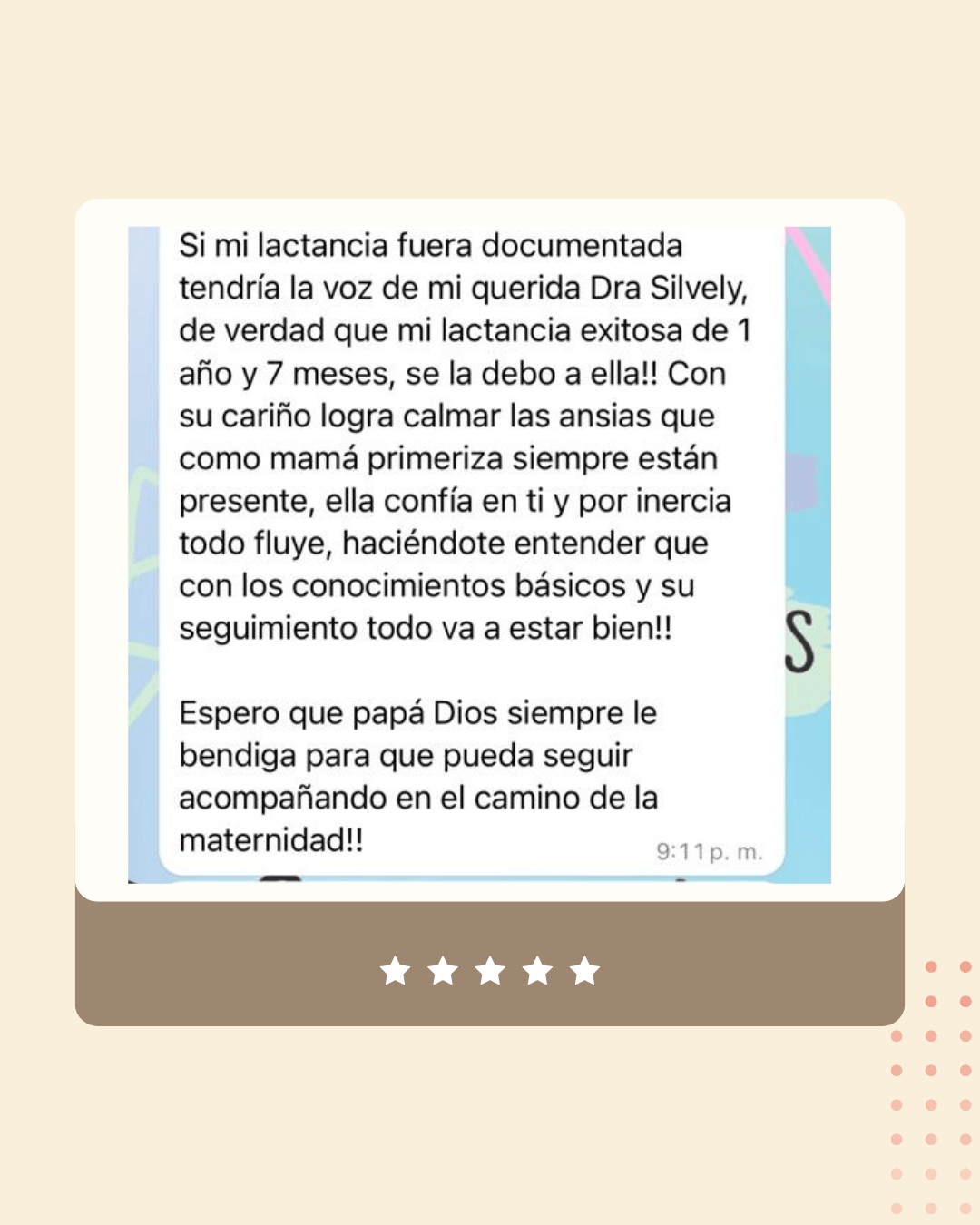He tenido el honor de acompañar a muchas mamás hacia una lactancia exitosa y una maternidad más relajada y segura.
